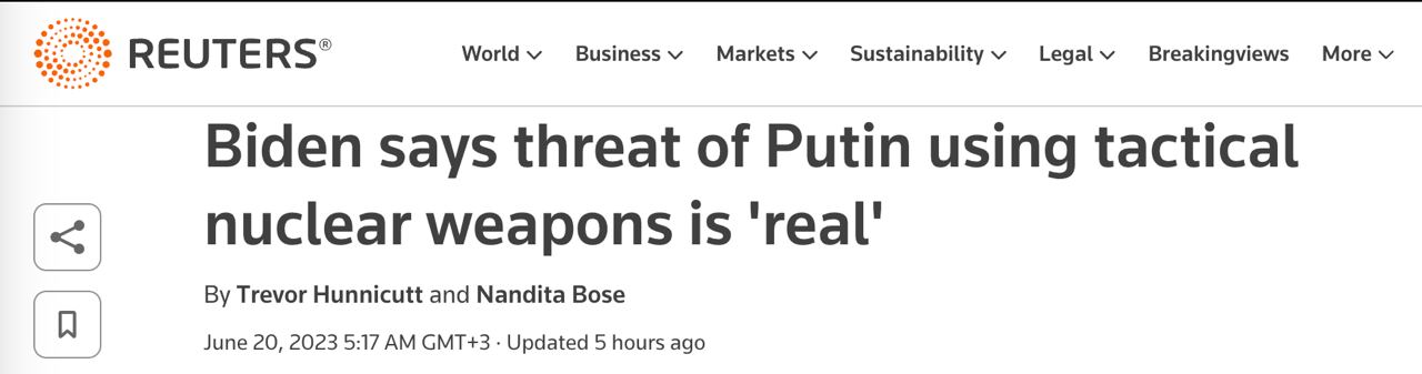 10.23 Угроза применения Путиным тактического ядерного оружия является "реальной", заявил Джо Байден .