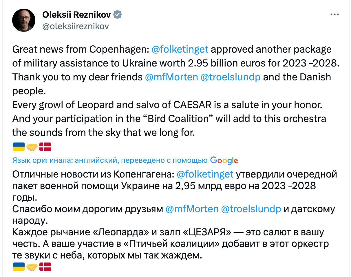 13.12 Дания окажет Украине военной помощи почти на 3 млрд евро в течение 2023-2028 годов.