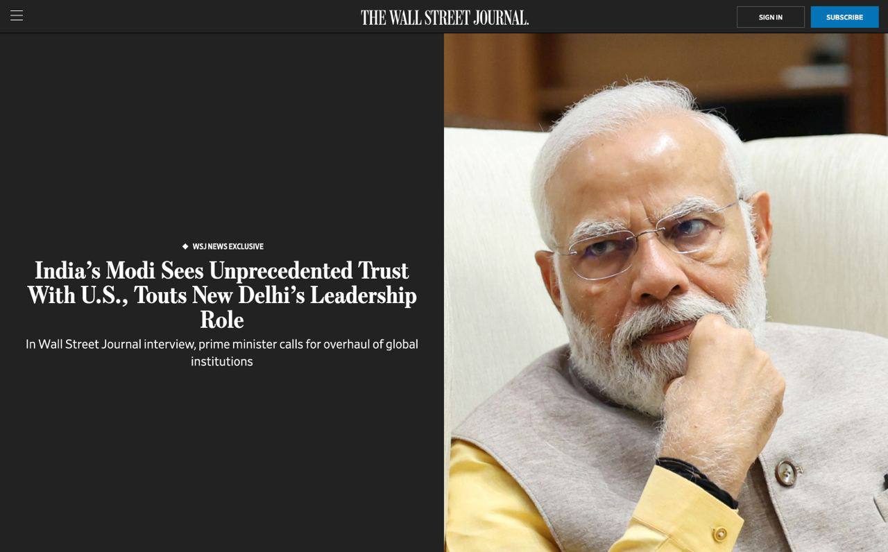 14.53 В войне в Украине Индия выступает за мир, заявил премьер-министр Нарендра Моди в интервью The Wall Street Journal накануне своего первого визита в США.