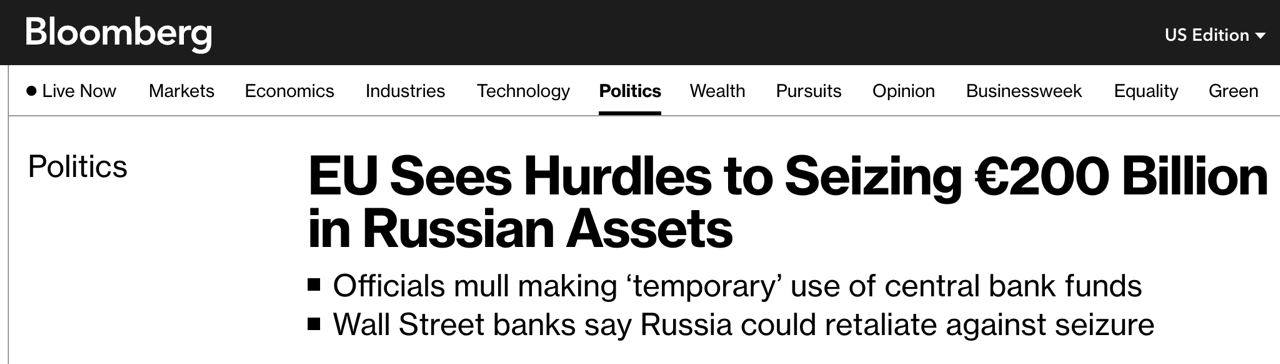 Напомним, ЕС заблокировал более 200 миллиардов евро активов российского центрального банка с момента полномасштабного вторжения РФ в Украину.