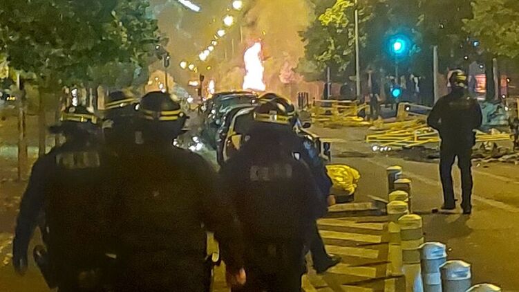 По всей Франции протестующие поджигали автомобили и здания, грабили магазины, нападали на полицейские участки, забрасывая их фейерверками, дрались с полицией.