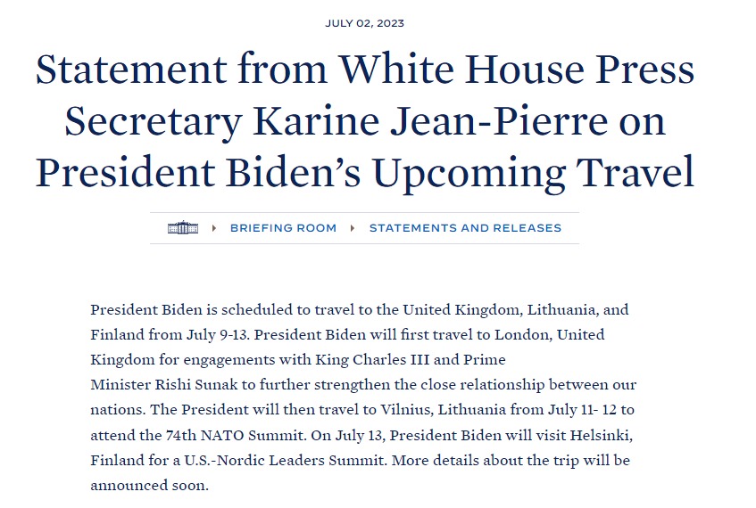 Президент США Джо Байден намерен отправиться в турне по Европе. С 9 по 13 июля он посетит Великобританию, Литву и Финляндию.