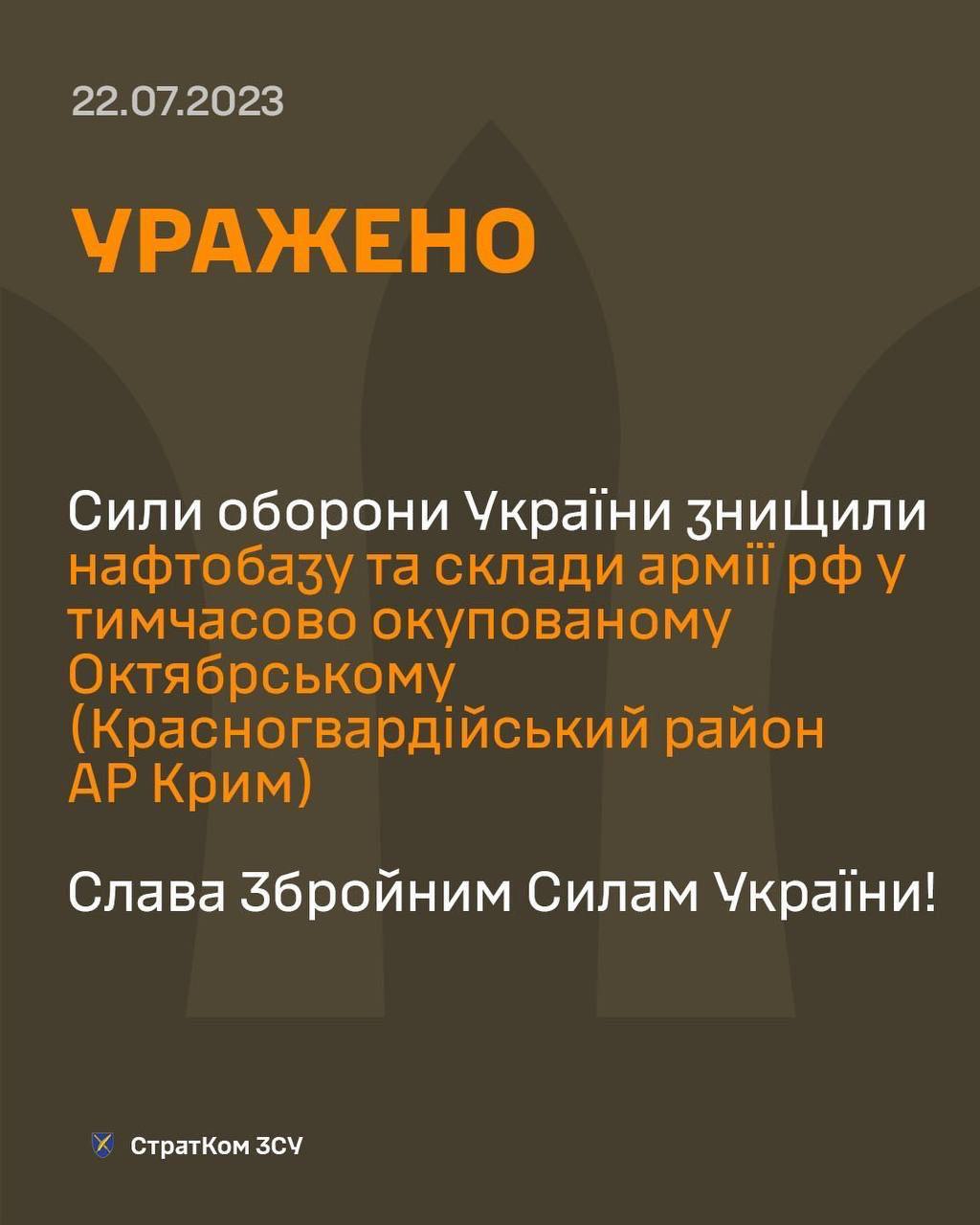 13:25 ВСУ подтвердили удар по нефтебазе и складу боеприпасов в Крыму.