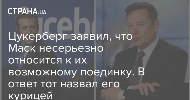 Владелец компании Meta Марк Цукерберг заявил, что отказывается от боя с предпринимателем Илоном Маском, потому что тот "настроен несерьезно". Маск в ответ назвал Цукерберга "курицей".