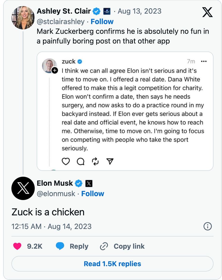 "Я думаю, мы все можем согласиться, что Илон несерьезный, и пора двигаться дальше", - написал Цукерберг в Threads.