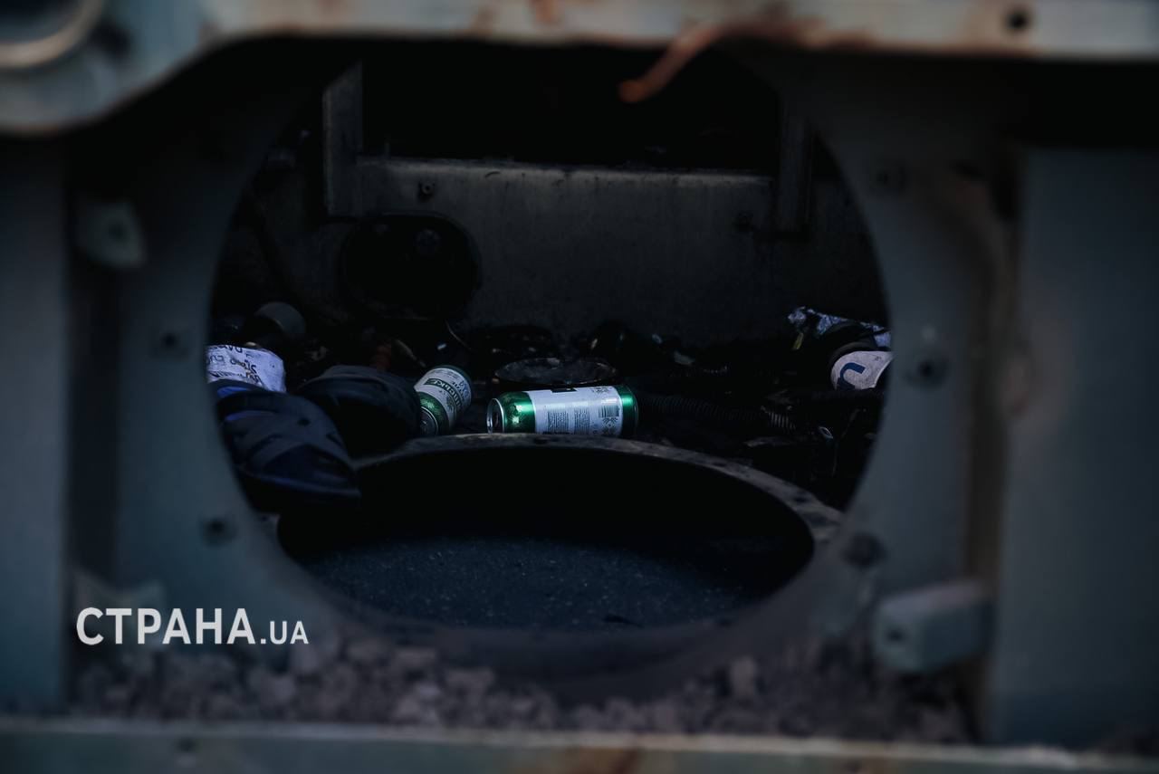 Подбитую технику охраняют полицейские, которые следят за тем, чтобы люди на нее не залезали.