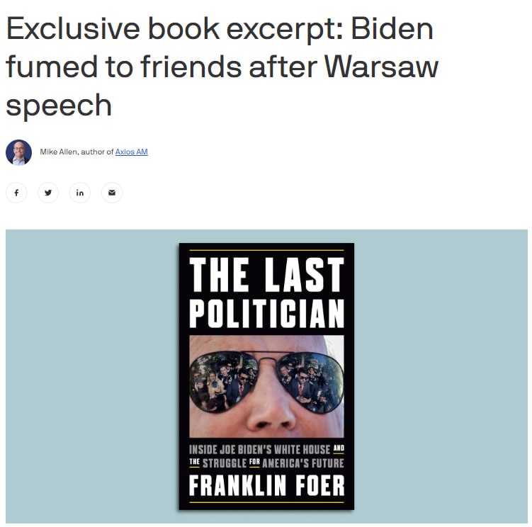 Появился отрывок из книги Франклина Фойера "Последний политик: внутри Белого дома Джо Байдена и борьбы за будущее Америки", в котором  автор сравнивает Байдена с ребенком.