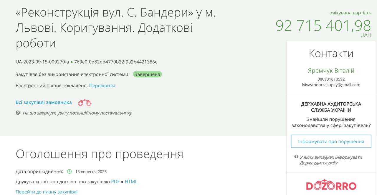 Заявку в системе Prozorro разместилл коммунальное предприятие "Львовавтодор".