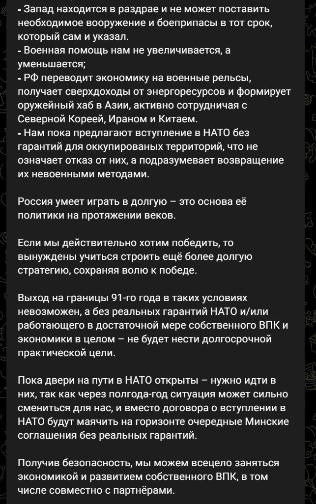 Запад же, по мнению Арестовича, "находится в раздрае и не может поставить необходимое вооружение и боеприпасы в тот срок, который сам и указал". По итогу военная помощь Украине сейчас уменьшается.
