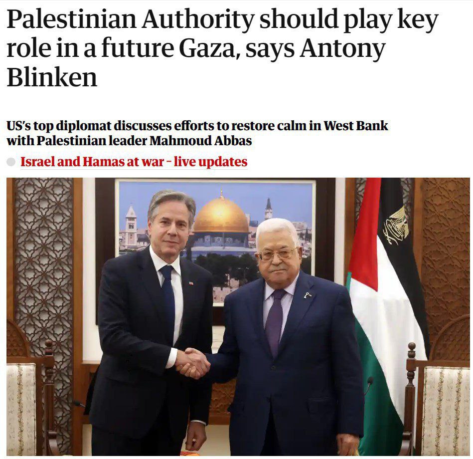 Аббас после встречи с Блинкеном заявил, что Палестинская автономия возьмет на себя власть в Газе только как часть "всеобъемлющего политического решения" всей "израильской проблемы". Позднее представители автономии уточнили, что речь идет о возврате палестинцам западного берега реки Иордан, где сейчас находятся израильские поселенцы.