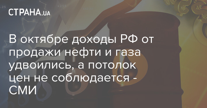 Поступления в бюджет РФ от продажи газа и нефти в октябре удвоились по сравнению с сентябрем. Ценовой потолок, введённый странами G7, в реальности не соблюдается.