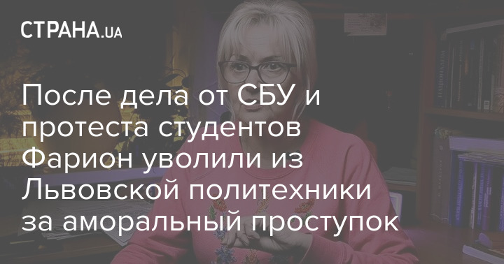 Фарион уволена по п.3 ст. 41 Кодекса законов о труде Украины, который гласит: "Совершение работником, выполняющим воспитательные функции, аморального проступка, не совместимого с продолжением работы, является основанием для расторжения трудового договора с работником".