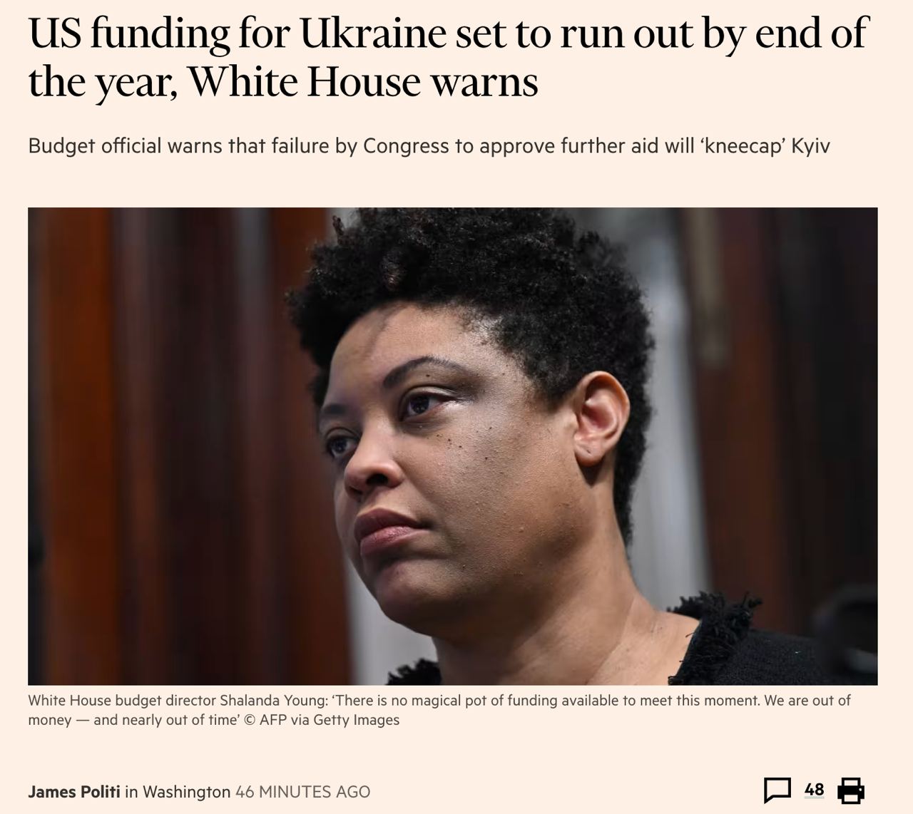 12.51 У США до конца года закончатся средства для финансирования Украины, если Конгресс не одобрит новый пакет помощи.