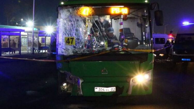 В Казахстане автобус протаранил толпу после того, как женщину-водителя ударил пассажир, и она потеряла сознание.