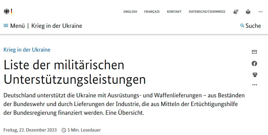 Ранее генеральный инспектор Бундесвера Карстен Бройер говорил, что Германия продолжит оказывать помощь Украине и поставит Киеву почти 200 тысяч артиллерийских снарядов в 2024 году