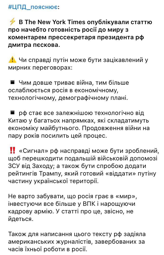12:21 Центр противодействия дезинформации при СНБО заявляет, что журналисты газеты The New York Times, написавшие статью о готовности России к переговорам, являются агентами Кремля.
