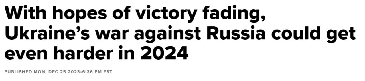 При этом уходящий год войны "несомненно истощил военные ресурсы Запада и политический аппетит к поддержанию огромных объемов военной помощи Украине". И продолжение финансирования Украины в 2024 году "далеко не гарантировано".