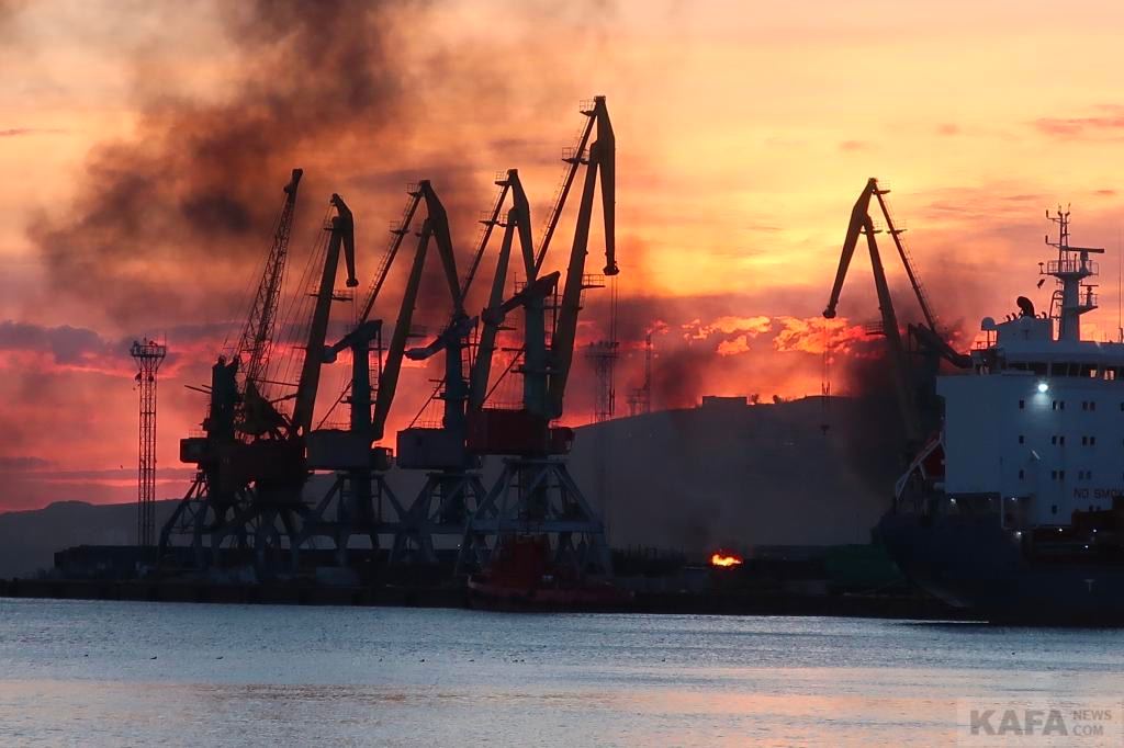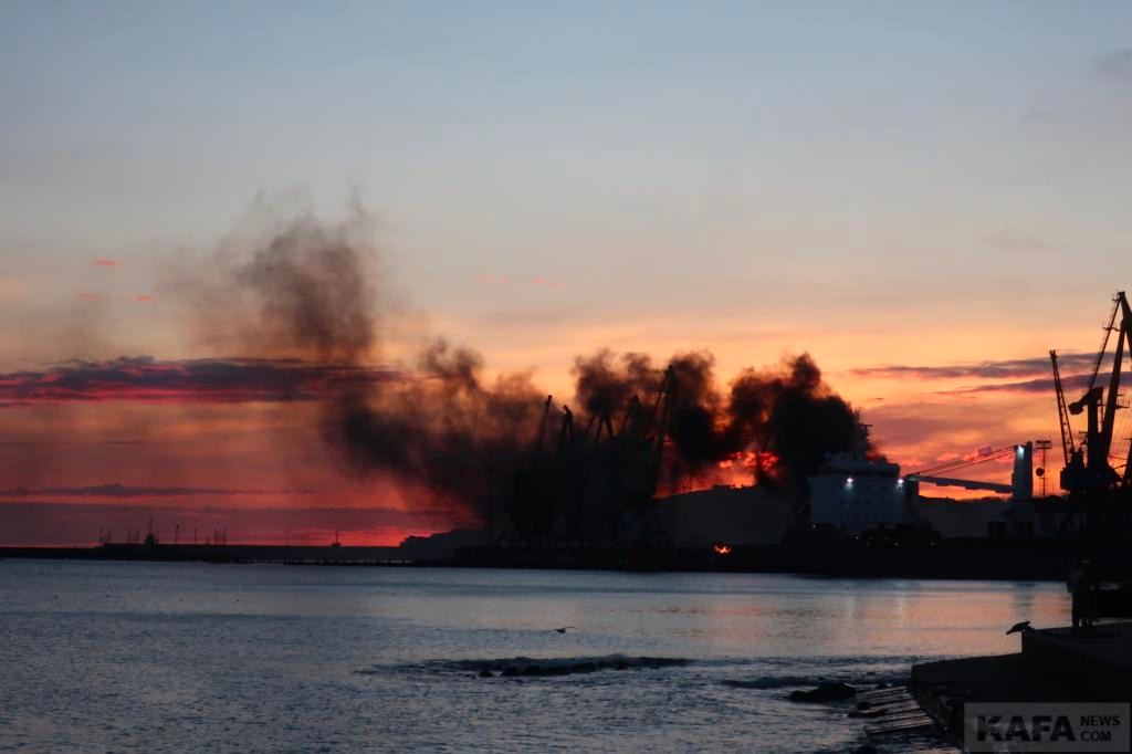11.51 В порту Феодосии с утра еще продолжался пожар после прилета по кораблю "Новочеркасск".