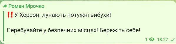 18.16 Сообщают о взрывах в Херсоне.