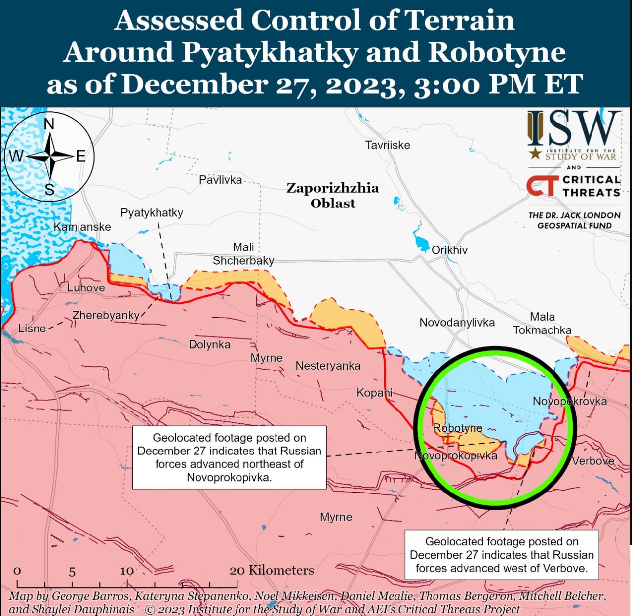 Аналитики ссылаются на кадры с геолокацией, опубликованные 14 и 27 декабря. Они показывают, что российские войска продвинулись к западу от Вербового.