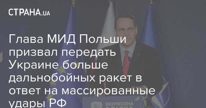 Новый глава МИД Польши Радослав Сикорский призвал передать Украине больше дальнобойных ракет в ответ на массированные ракетные удары РФ.