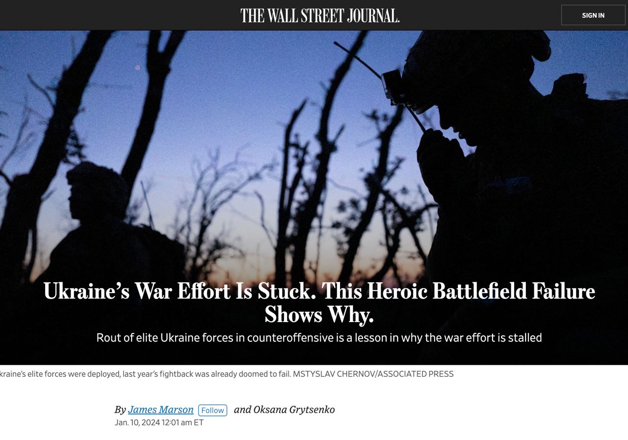 13.42 "Разгром элитных украинских сил в контрнаступлении — урок того, почему военные усилия застопорились", - пишет The Wall Street Journal.