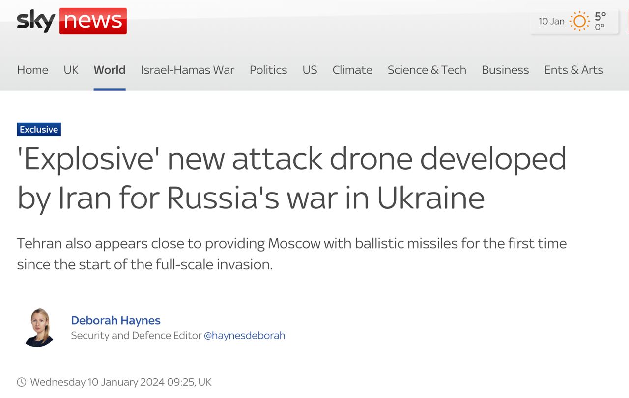 Украинский источник издания заявил, что сообщения о разработке нового типа дрона «скорее всего, правда», и у Киева "есть огромные опасения по поводу возможных поставок упомянутых типов дронов".