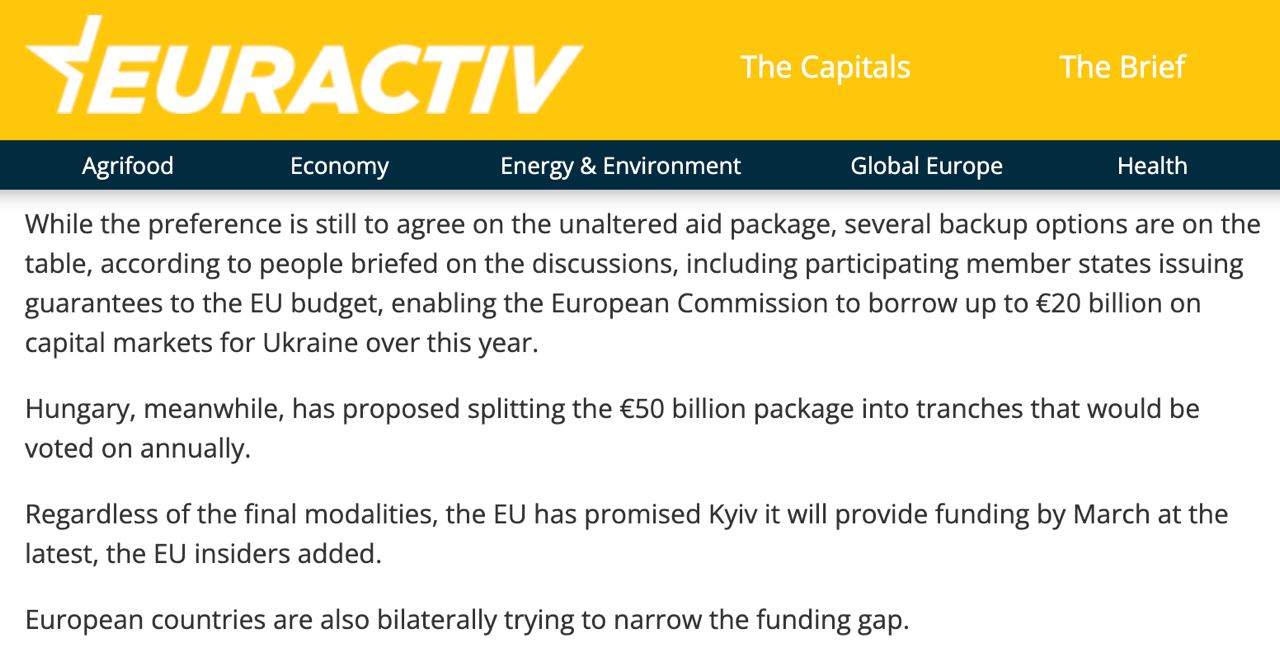 14.50 Евросоюз пообещал Украине, что в любом случае предоставит финансирование не позднее марта, сообщает Euractiv со ссылкой на источники.