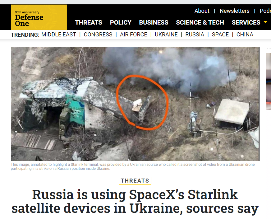 "По словам одного украинского источника, украинские войска впервые обнаружили использование Россией спутниковых устройств на передовой несколько месяцев назад. Второй украинский источник подтвердил использование Starlink и добавил, что его использование, похоже, растет", - говорится в статье.