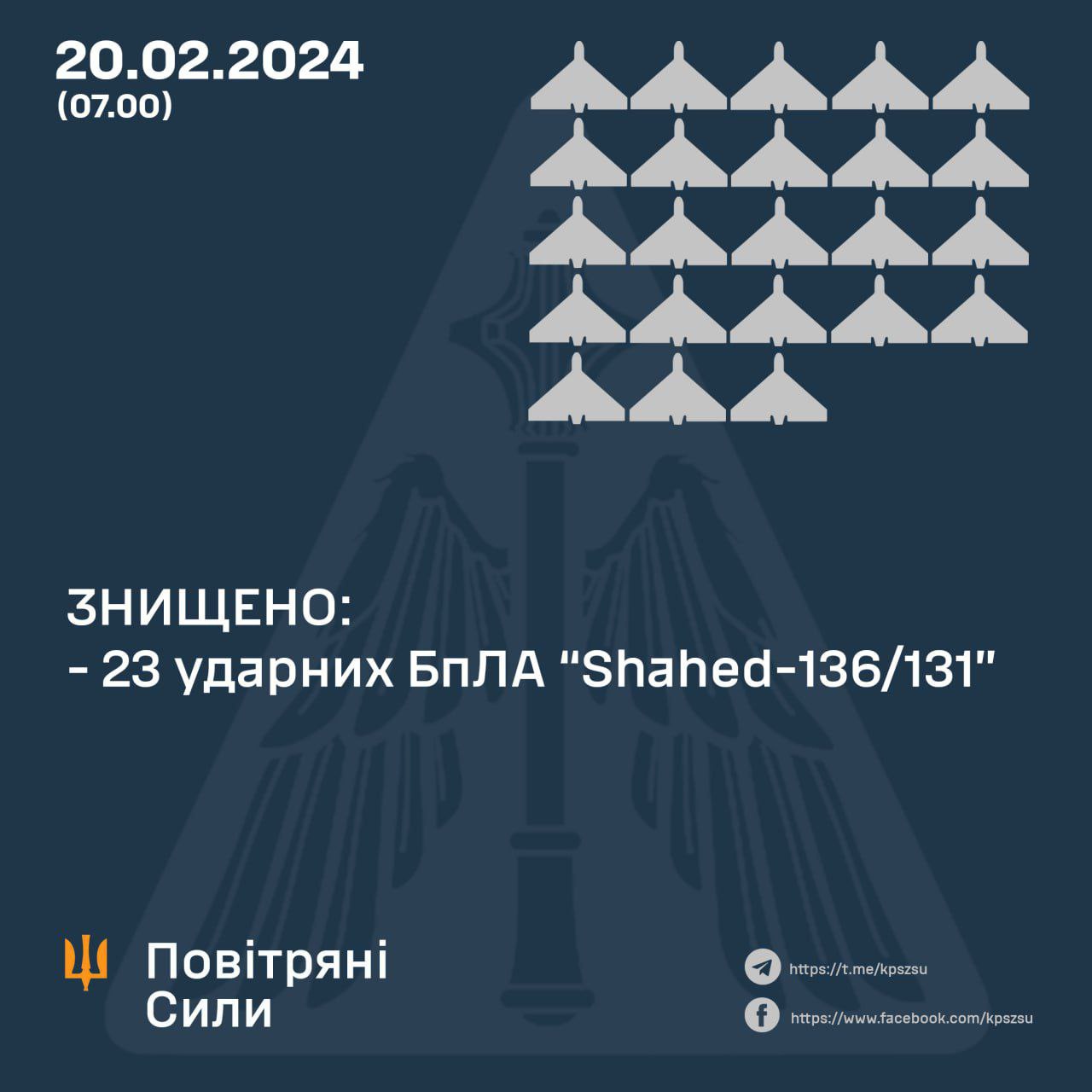 07.47 ВСУ ночью сбили все запущенные по Украине 23 "Шахеда".