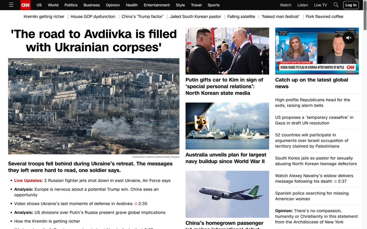 12.37 "Дорога на Авдеевку завалена трупами украинцев", - такой заголовок сейчас на главном материале на сайте CNN.
