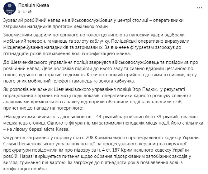 Об этом сообщает в Фейсбуке пресс-служба полиции Киева.