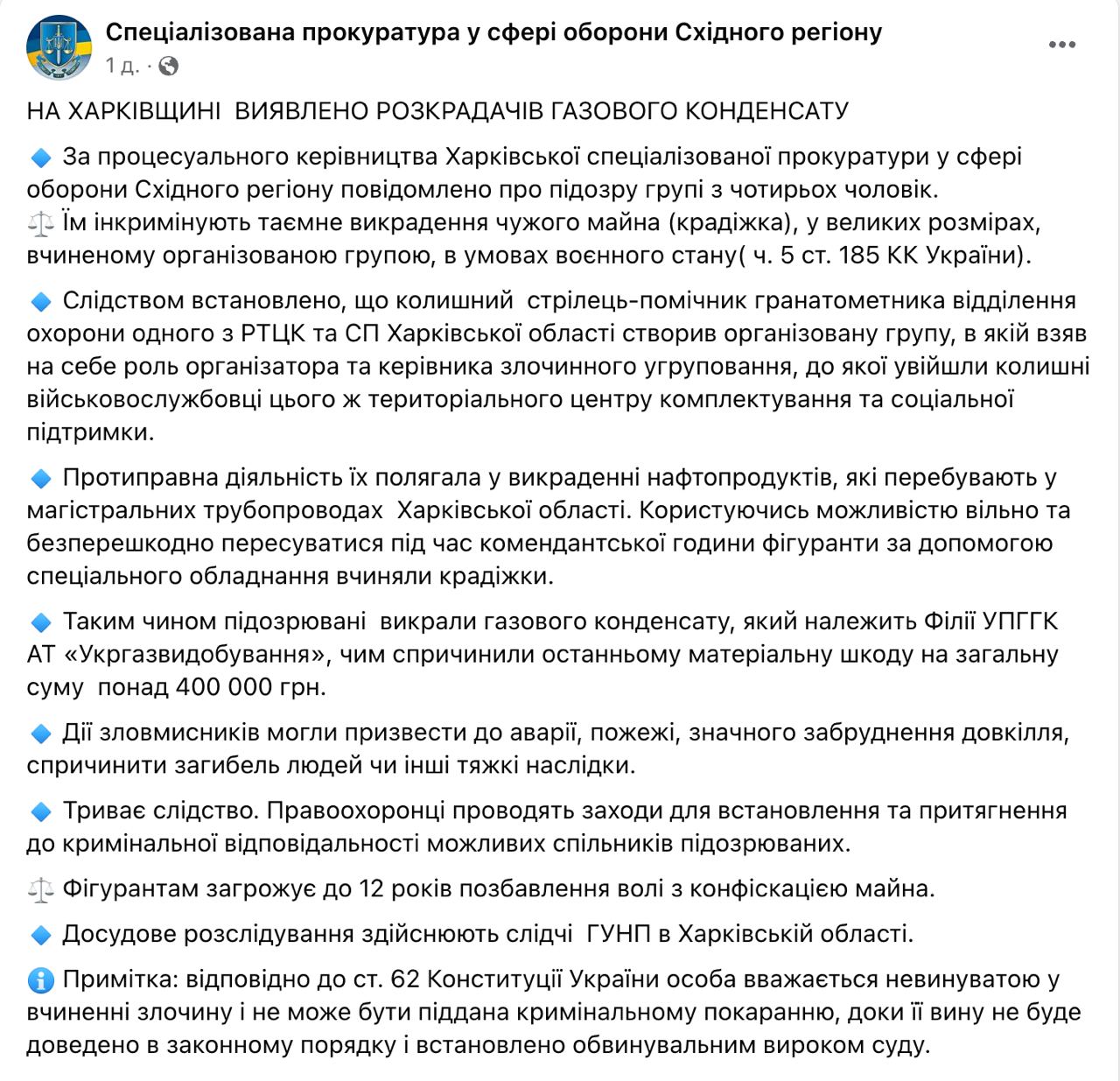 В Харьковской области сотрудники районного ТЦК воровали газовый конденсат из магистральных трубопроводов, пользуясь тем, что могут передвигаться во время комендантского часа.