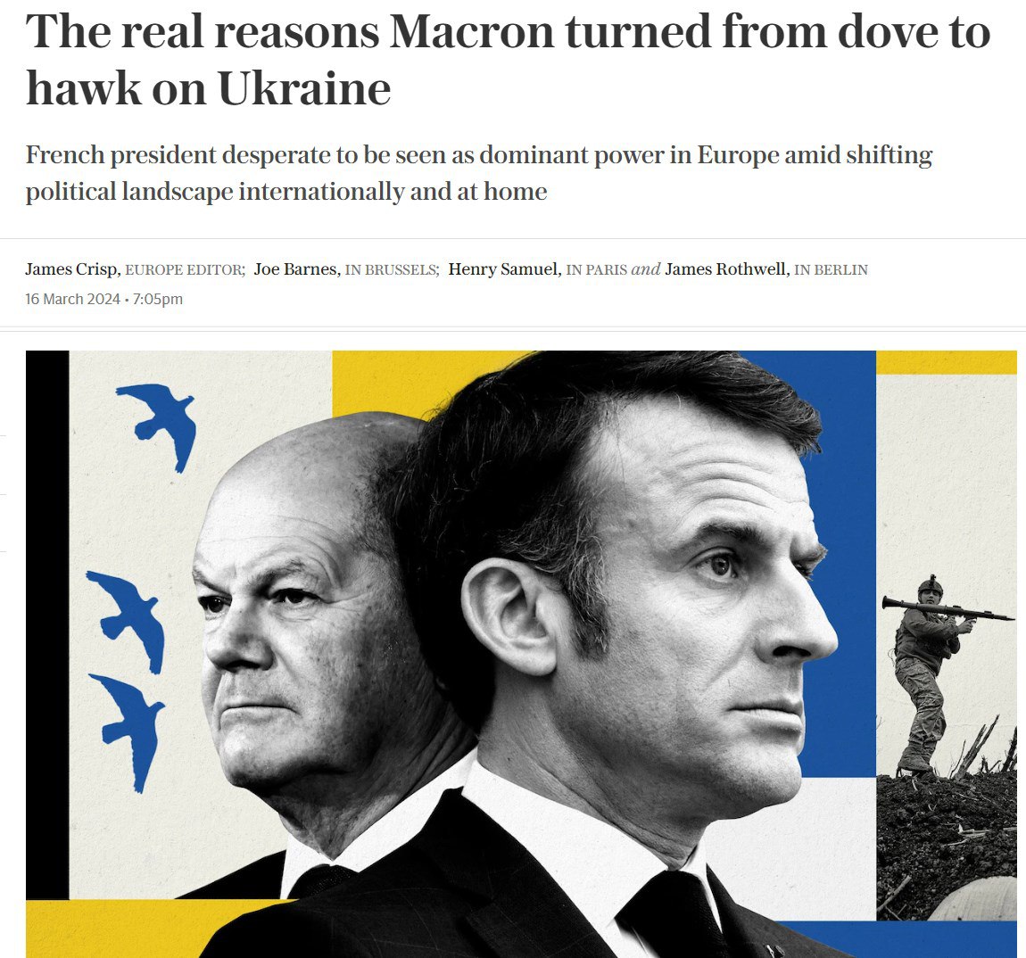 Об этом пишет британская газета The Telegraph, комментируя, почему французский президент превратился в "ястреба" по вопросу Украины.