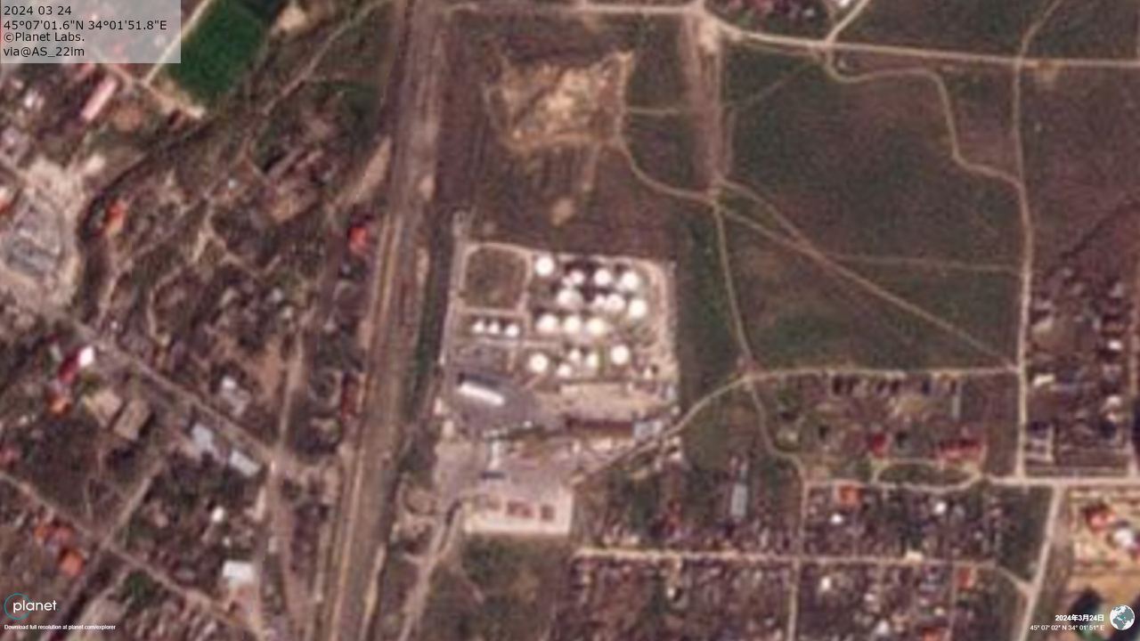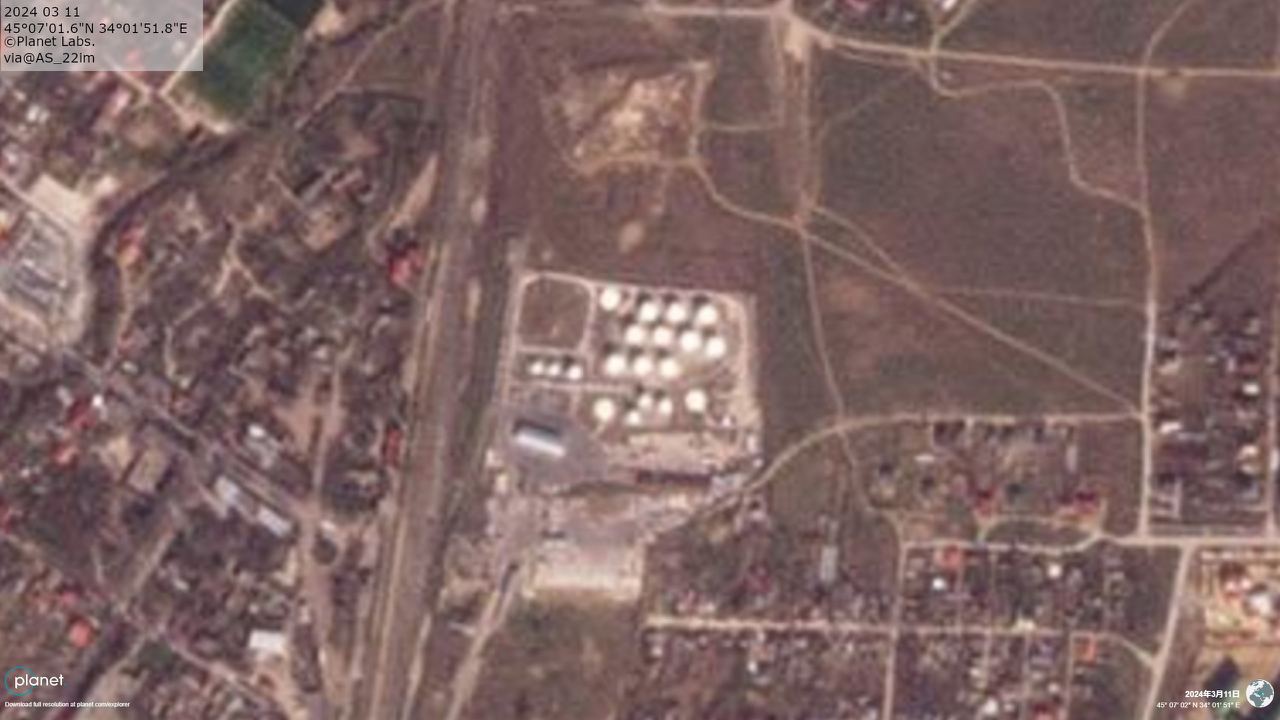 10.01 В сети публикуют спутниковые снимки нефтебазы под Гвардейском в Крыму после прилета.