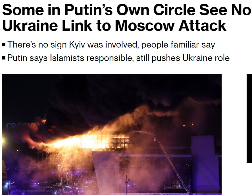 "По словам четырех человек, имеющих тесные связи с Кремлем, нет никаких доказательств причастности Украины. Путин присутствовал на обсуждениях, где чиновники согласились, что нет никакой связи с Киевом, но по-прежнему полон решимости использовать трагедию, чтобы попытаться сплотить россиян в поддержку войны в Украине", – говорится в статье.