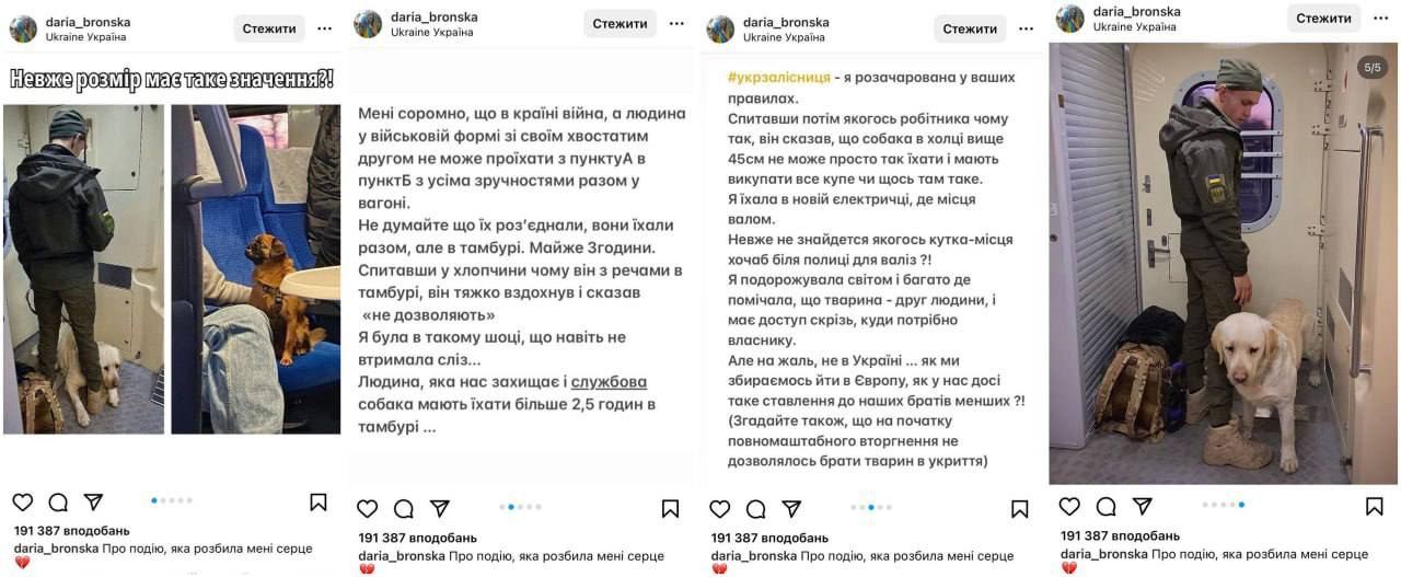 В сети разгорелся скандал с участием "Укрзалізниці" и военного, который ехал с собакой в тамбуре