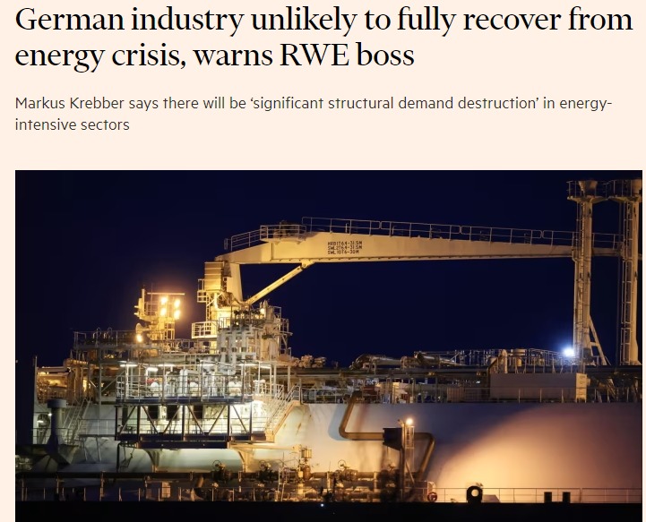 Немецкая промышленность вряд ли восстановится до уровня, существовавшего до войны с Украиной. Это связано с тем, что повышенные цены на импортируемый сжиженный природный газ поставили крупнейшую экономику Европы в невыгодное положение.