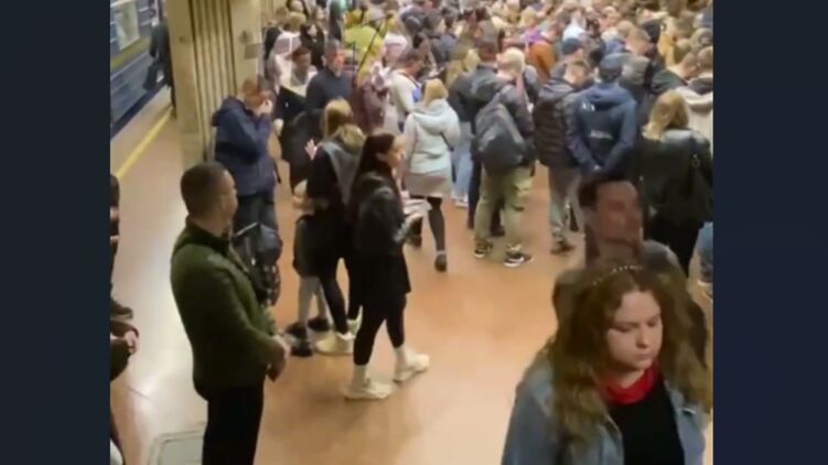 В сети появилось видео с киевских станций метро "Крещатик" и "Выдубичи", где скопилось много людей из-за тревоги.