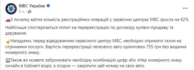 При этом стоимость перерегистрации легкового авто ориентировочно равна 755 грн без издания номерного знака.