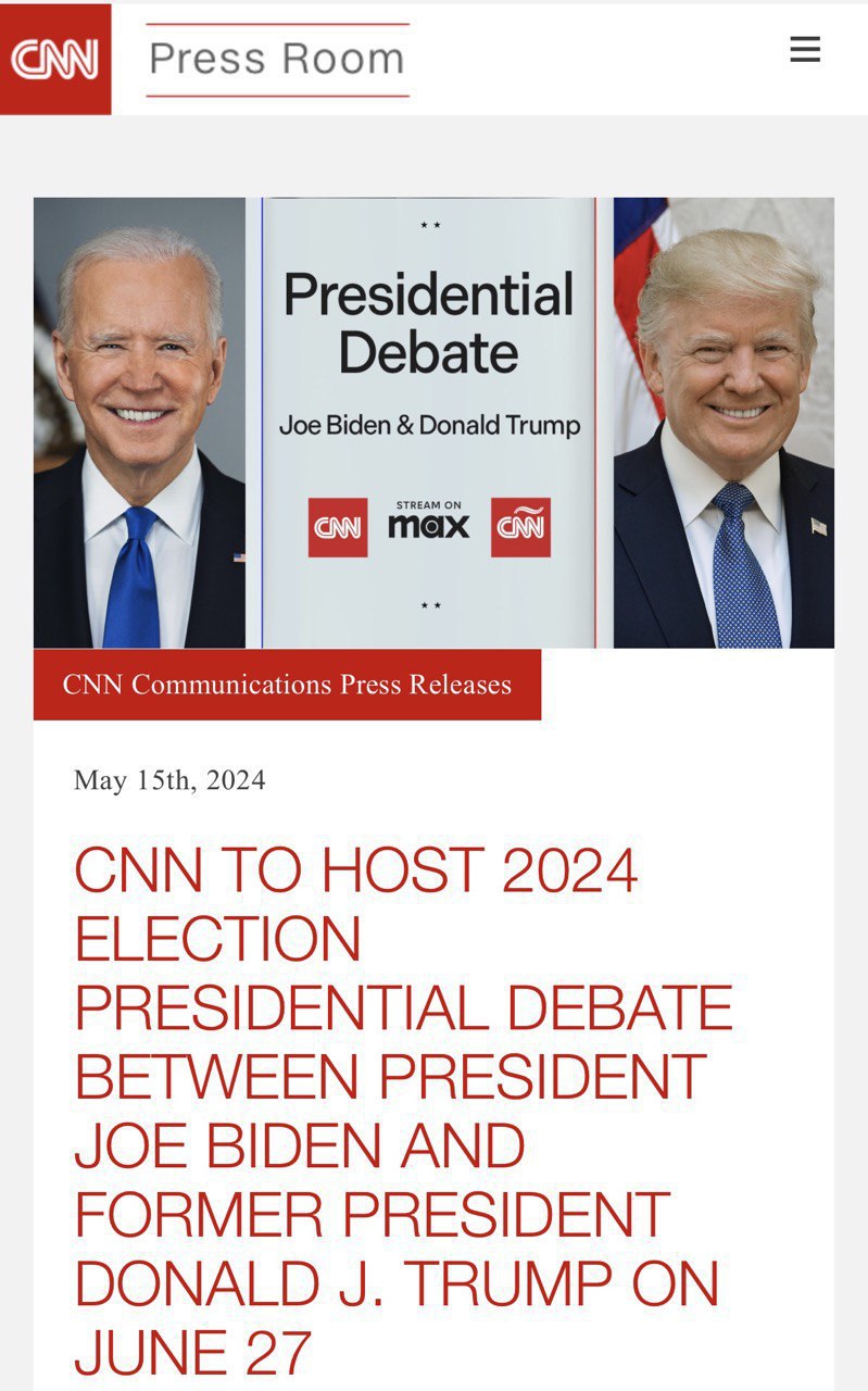 CNN тем временем уже сообщило, что первые дебаты Байдена и Трампа пройдут 27 июня в Атланте, штат Джорджия.