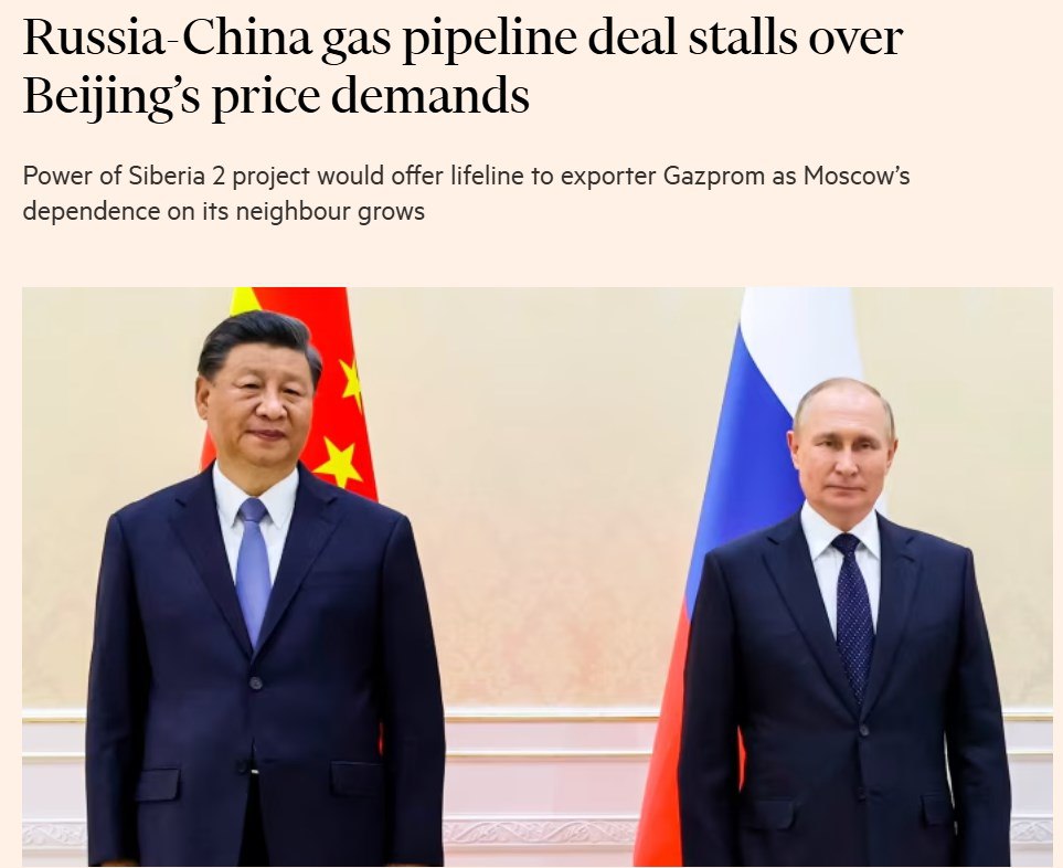 "Китай попросил назначить цену, близкую к сильно субсидируемым российским внутренним ценам, и обязуется покупать лишь небольшую часть запланированной годовой мощности трубопровода", - говорится в статье.