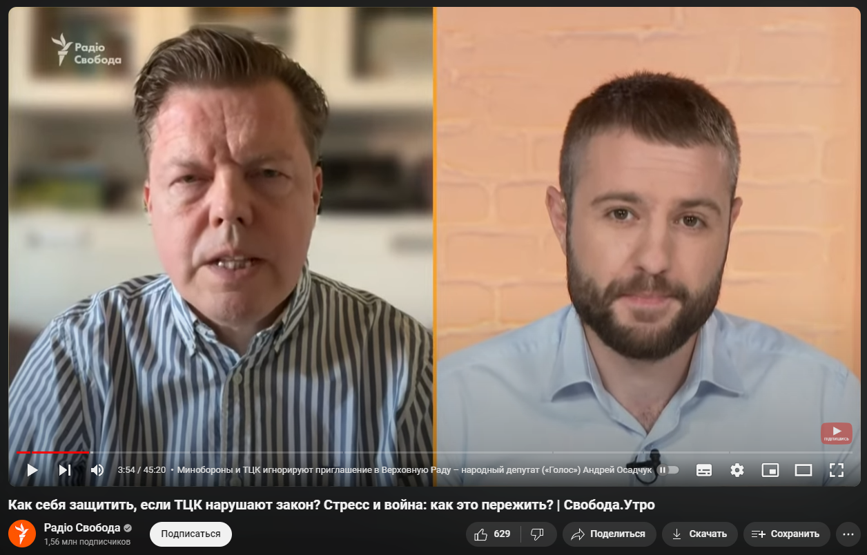 "Вчера на заседание ВСК, которая уже несколько месяцев как создана в Верховной Раде, не пришел ни один представитель ТЦК и Минобороны, которых туда вызвали. Вчера никто не пришел по приглашению. Хотя это, наверное, первое приглашение, а дальше может быть и вызов с существенными последствиями, потому что это временная следственная комиссия в Верховной Раде. То есть мы сейчас в ситуации, когда государственные органы, ответственные за проведение процесса мобилизации, ответственные за обеспечение прав и свобод человека и гражданина, они совсем не хотят общаться не просто с медиа, а даже с депутатами Верховной Рады", – сказал Осадчук.