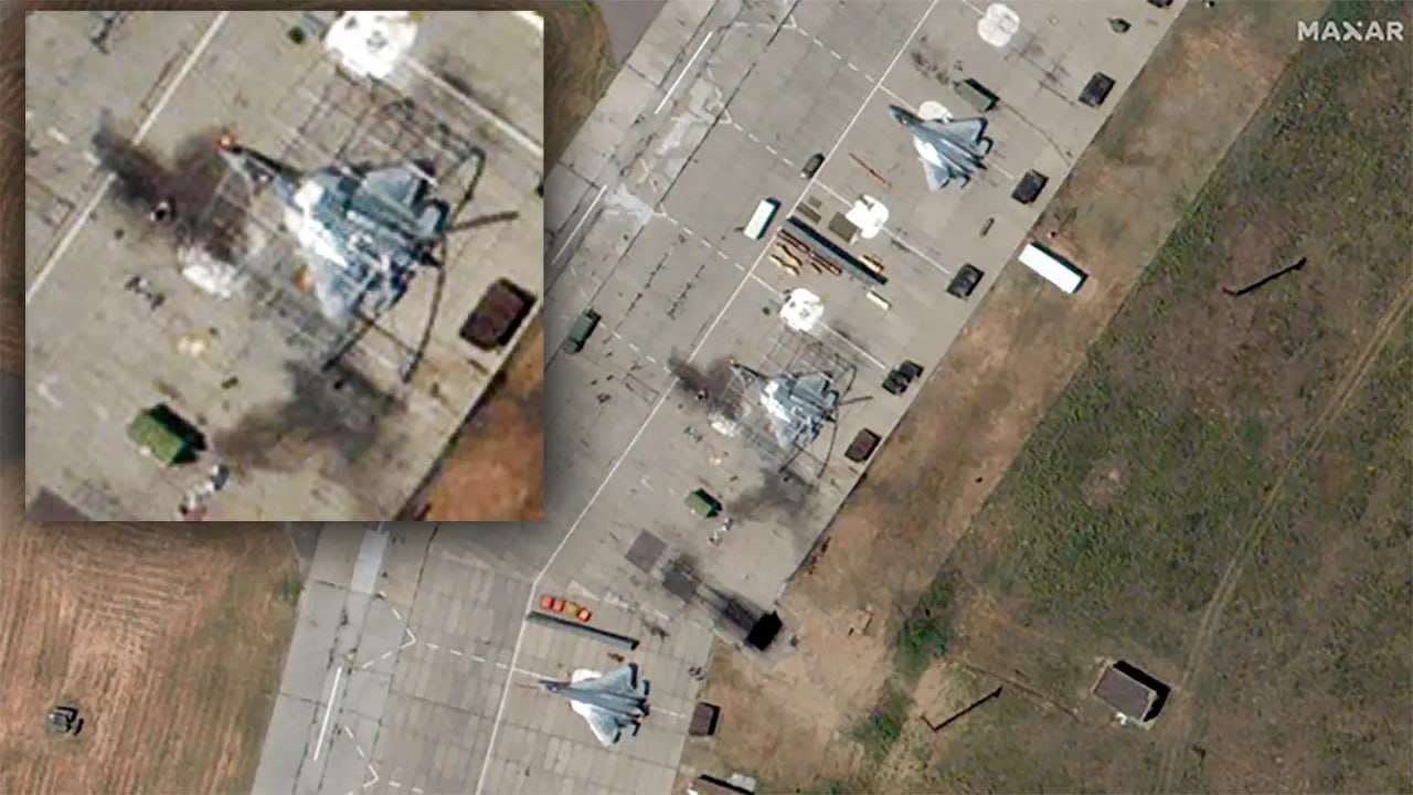 23:45 Спутниковый снимок поврежденного российского истребителя Су-57 на аэродроме Ахтубинск опубликовало американское издание The Warzone.