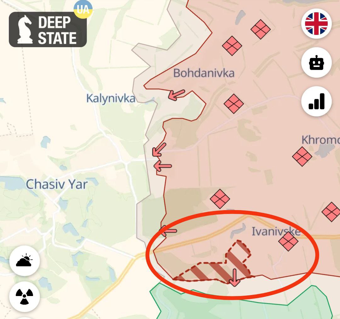 23:52 Военный паблик Deep State cообщает, что армия РФ захватила Ивановское к югу от Бахмута.