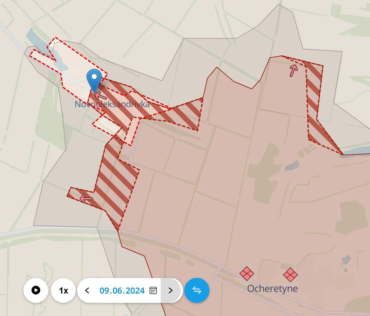 13:08 Российские войска продвинулись в Новоалександровке под Очеретино, пишет военный паблик Deep State.