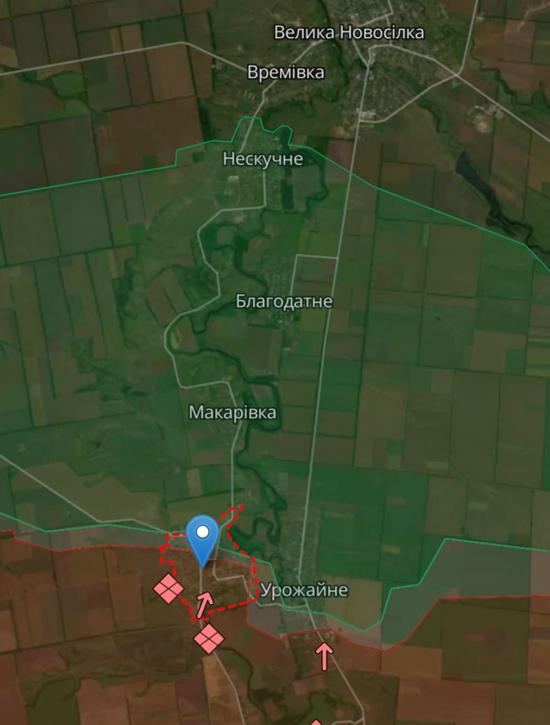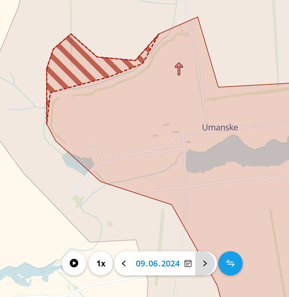 Также российские войска продвинулись к северу от Уманского на том же участке.