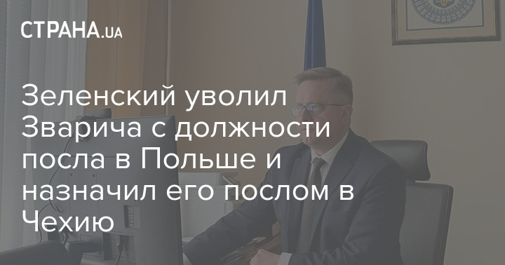 Владимир Зеленский уволил Василия Зварича с должности посла в Польше и назначил его послом в Чехию.