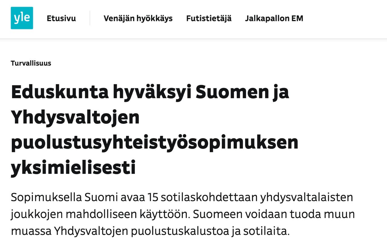 Он позволяет направить американцам в Финляндию свое оружие и солдат. Также будут объекты, доступ к которым смогут получить только Соединенные Штаты.