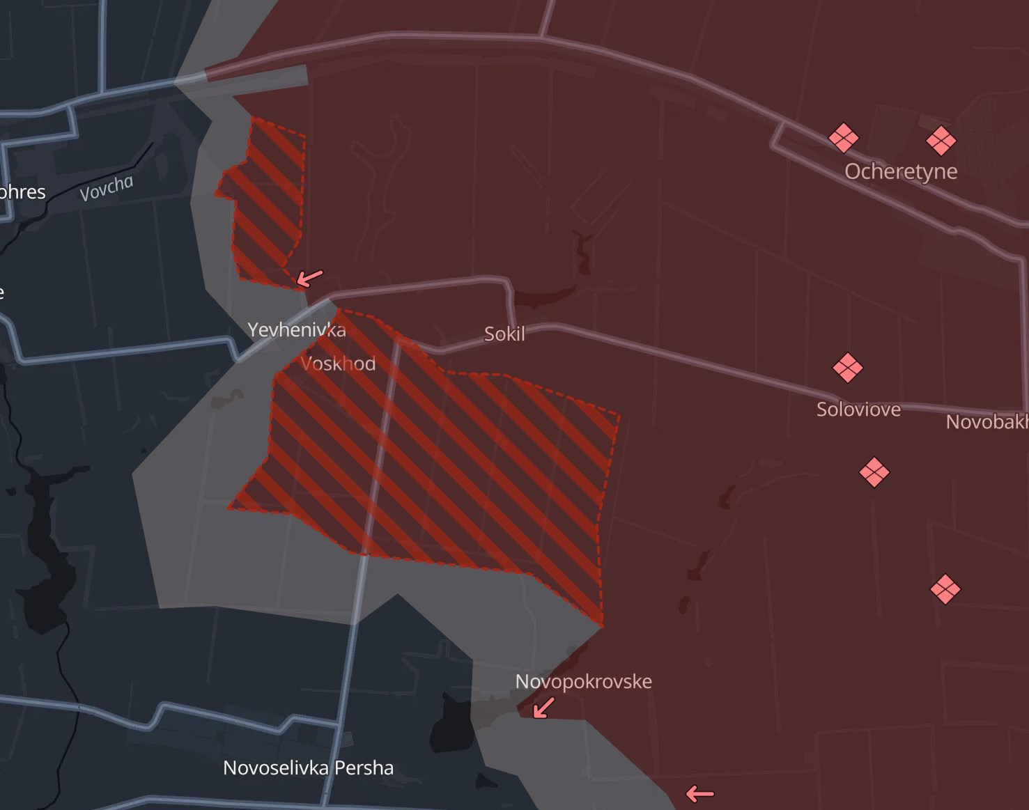 На Покровском участке российские войска захватили села Сокол и Восход, сообщил Deep State.
